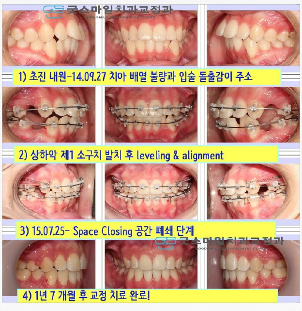 돌출입 발치 교정 과정의 주요 단계:
